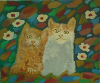 Panowie od kotków, czyli koledzy Józef Wollek i Tadeusz Gołąb w wielkiej formie. Dzisiaj w produkcji były koty na różnych tłach w wielokolorowe plamy. A efekt końcowy, całkiem udany. Na prezenty będzie jak znalazł.